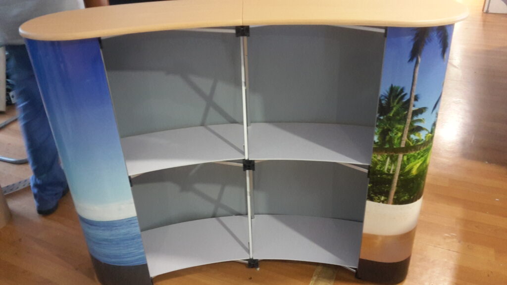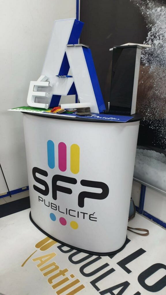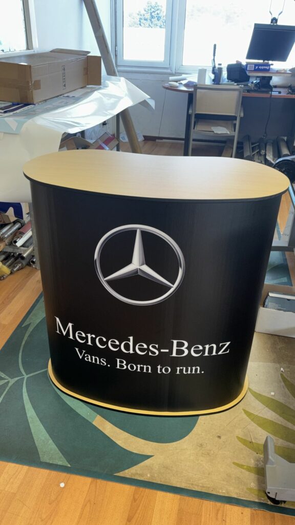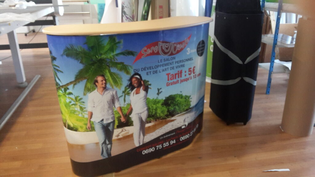 Les comptoirs transportables sont des mobiliers légers et modulables, conçus pour servir d’accueil ou de point d’information lors d’événements, salons et animations en magasin. Leur structure se plie et se déploie en quelques gestes, tandis que les visuels imprimés haute définition offrent un support de communication impactant et parfaitement intégré à votre univers de marque.
