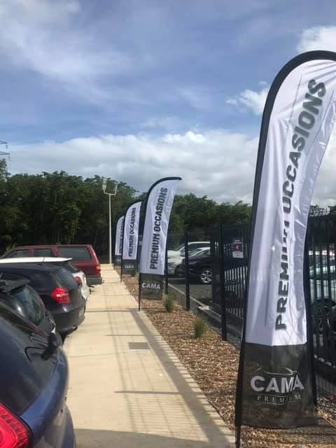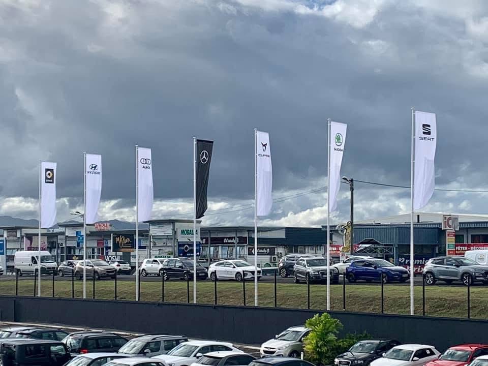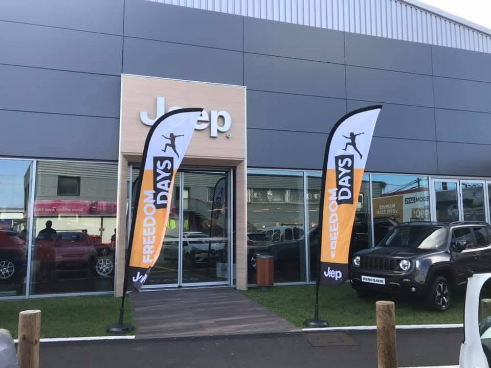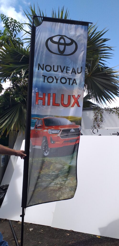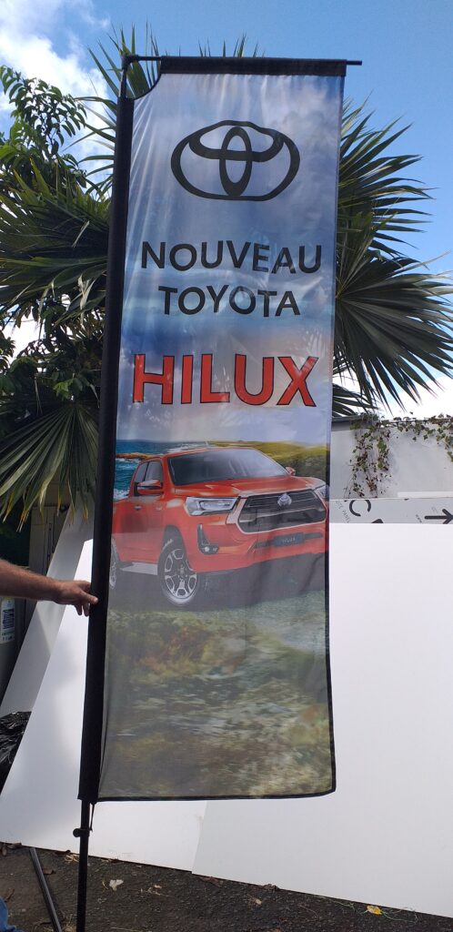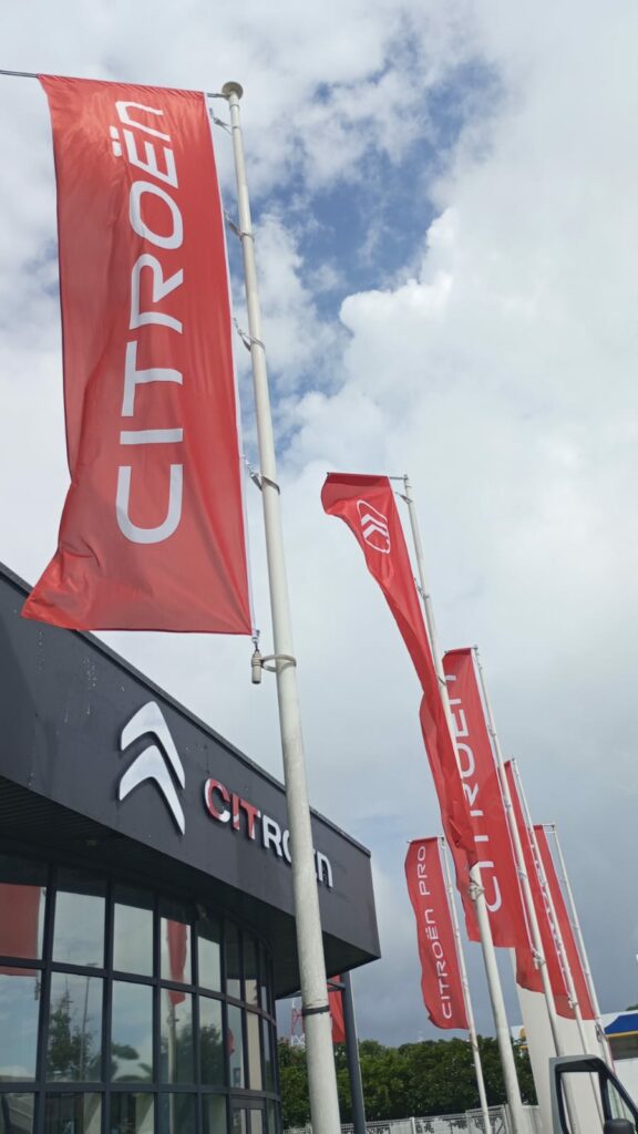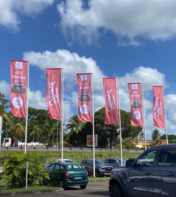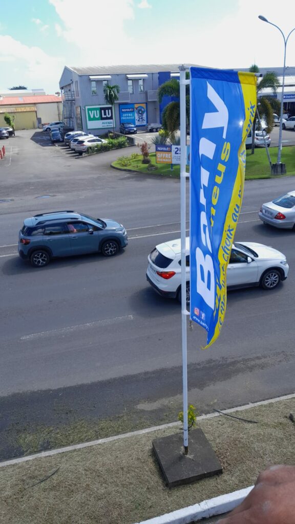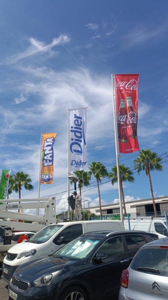 Les drapeaux et oriflammes sont des supports verticaux imprimés sur toile technique, montés sur des mâts flexibles. Installés en intérieur comme en extérieur, ils capitalisent sur le mouvement naturel pour attirer le regard et renforcer la visibilité de votre marque, d’un point de vente à un événement grand public.